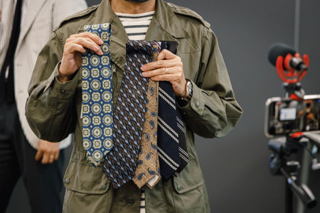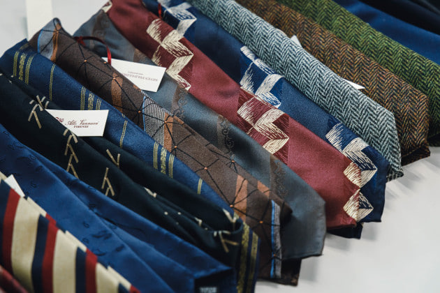 「〈Francesco Marino〉。洒落たヴィンテージパターンがクラシカルなラインナップ。ヘリテージなルックスながら非常に軽い仕上げで、重たくならず現代の装いに取り入れられます。」