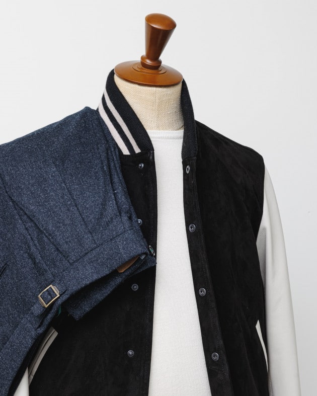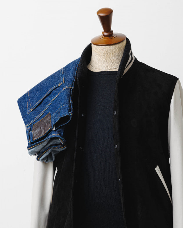 レトロな空気感漂うバーシティジャケット、所謂スタジャン。