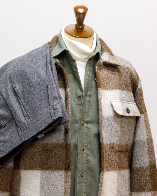 そんなブランドより、今シーズン注目したいのは大柄のブロックチェックが目を惹くシャツアウター。