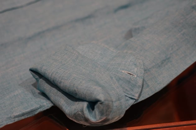 ノータイできれいに襟が立つのも、このシャツの特徴です。