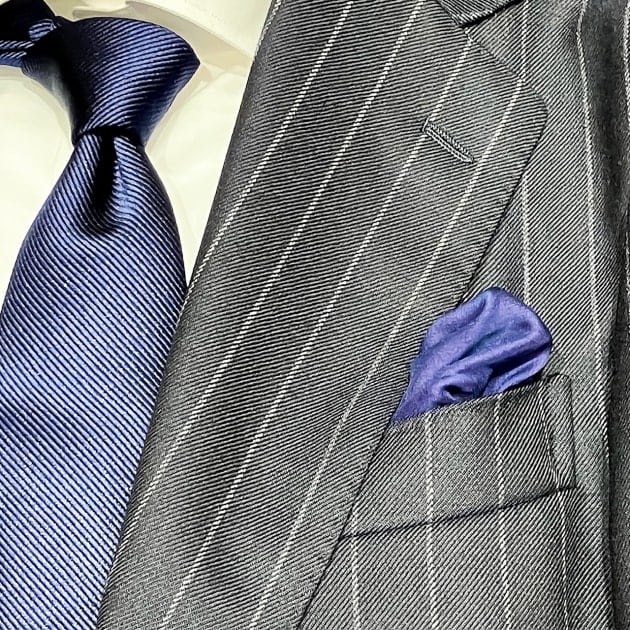 このような感じでネクタイと同系色にすれば目立ちすぎることはありません。あまり大きく見せないで、小さめに挿すのがポイントです。