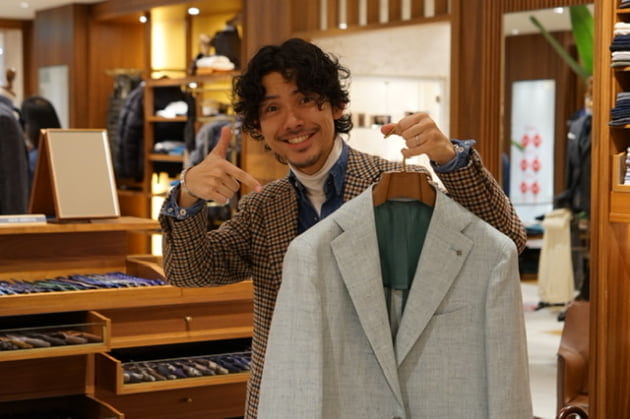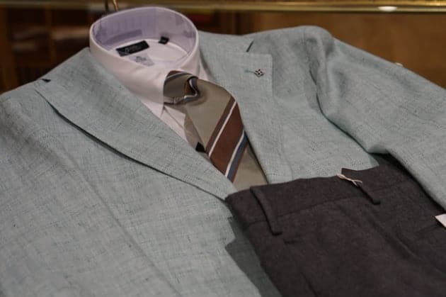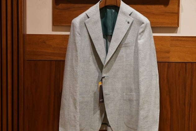 2024年TAGLIATOREの新作です。なんとも洒落た色と生地のジャケットです。