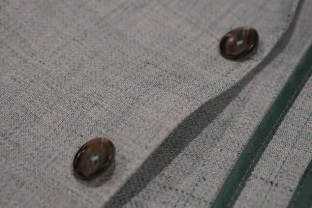 ボタンも生地に合わせて変更するこだわりよう。