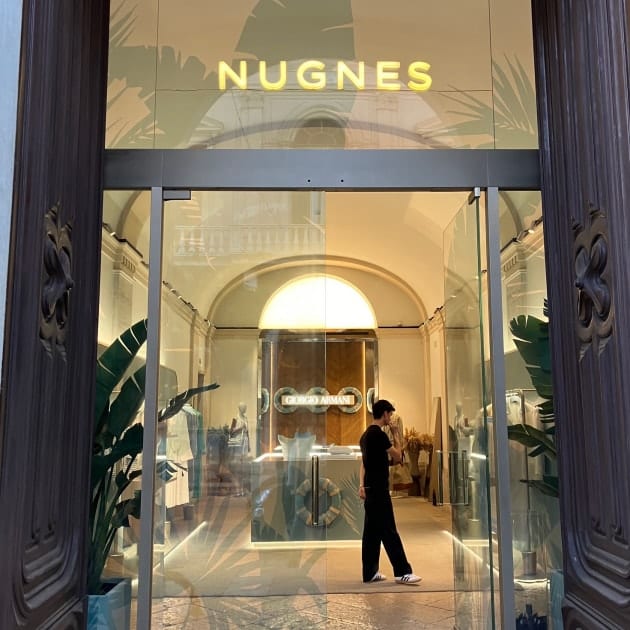 工場視察を終え、トラーニの街へ移動し、市内リサーチに出かけると素晴らしい セレクトショップがありました。「NUGNES 1920 ヌーニェス」という店内の内装も素晴らしいお店で、メゾン系ブランドとクラシックブランドをうまくミックスさせた品揃え。
