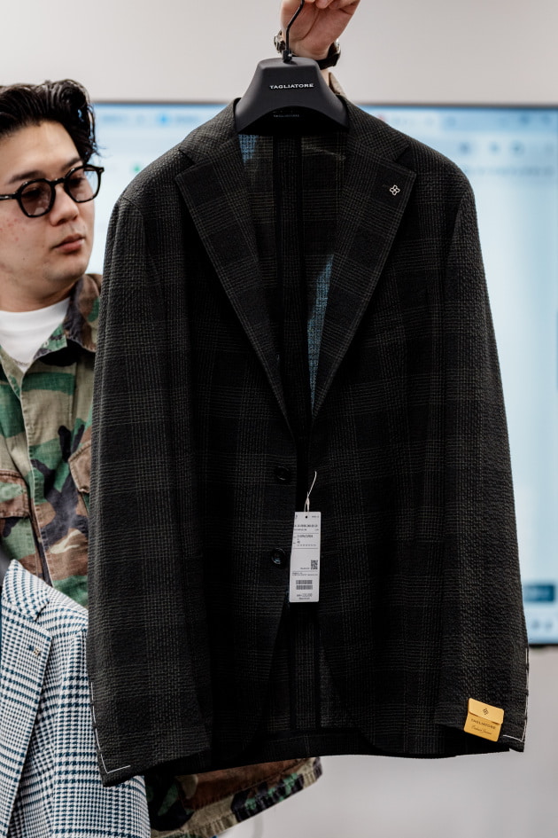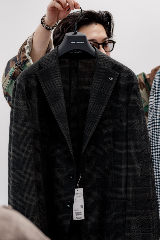 こちらもサンプルありませんが、ディレクター小林が「今シーズンの<TAGLIATORE>で一番カッコいい」と語るのがこの一着。