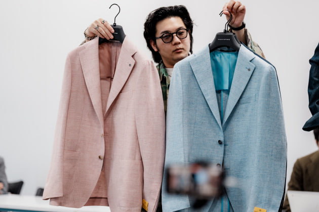 <Brilla per il gusto>では毎シーズン、こういう季節を感じられる明るい色味のジャケットもしっかり提案したいということで意識してセレクトしています。