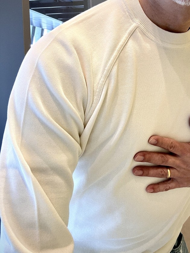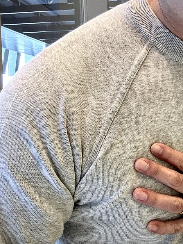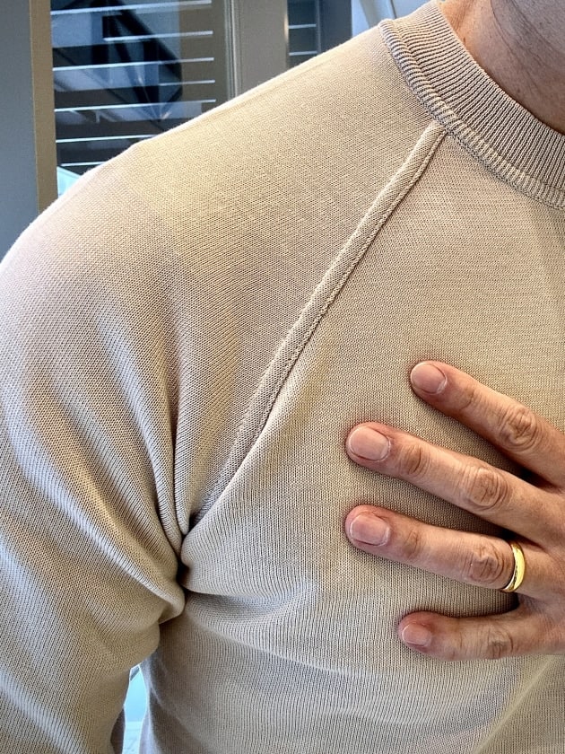 因みにサイズ44を着用してみました。ぴったりがお好みの方でしたら、こちらのフィット感でもいいと思います。
