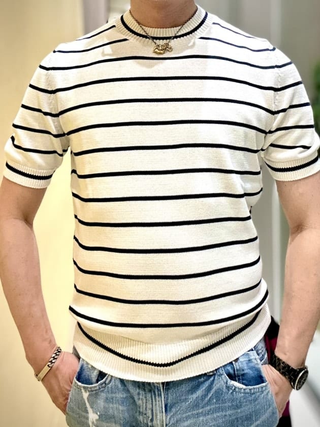 今日は、オーガニックコットンボーダーニットをご紹介させていただきます。