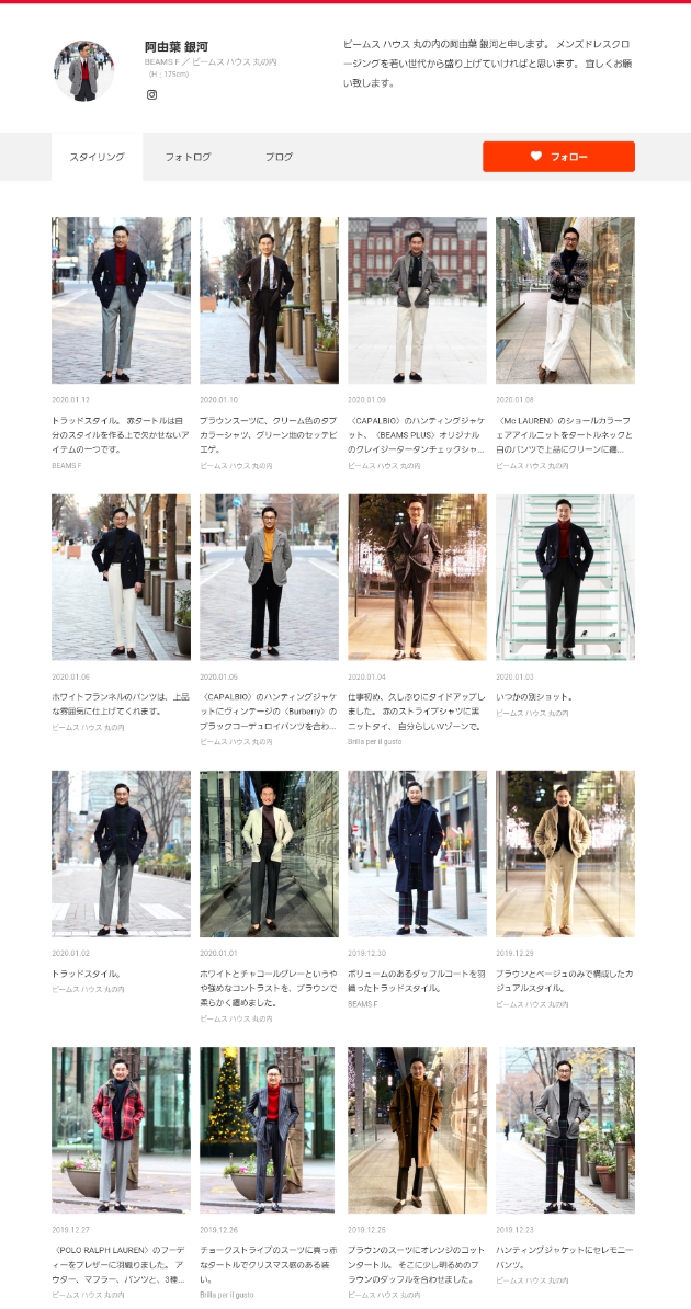 先ほどご紹介したスタッフ阿由葉、ほぼ毎日*スタイリングをアップしています。同じウェアでも何パターンもコーディネートしていますね。身長175センチとのことなので、着回し上手を目指し参考にしてみてはいかがでしょうか。勿論、フォローもおすすめです。