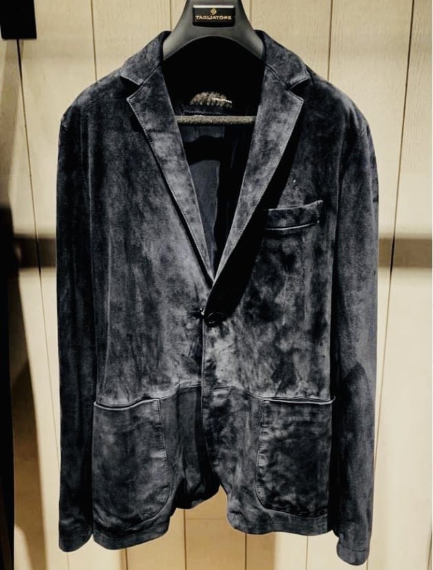 ブラックスエードです。モデル「CARSON」。筒袖のシャツジャケットのようなタイプですね。ラグジュアリーなモノトーンコーデにハマりそうです。