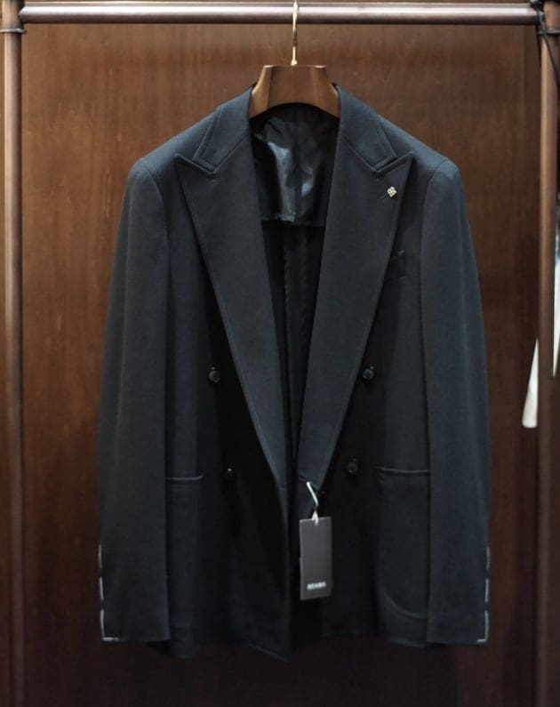 着心地は勿論良いですが、4個ボタンのリラックスした雰囲気とジャージのマッチングが◎。