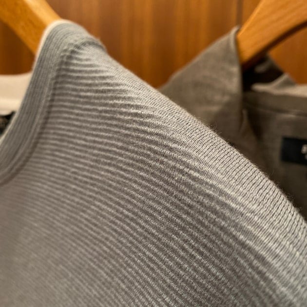 ファブリックは、平織りのリネンライクな生地感で、さらりとした肌触りになっており、快適な着心地に繋がっていきます。
