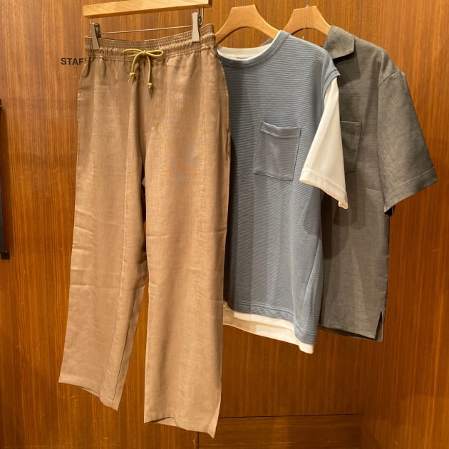 リネンライクなざくっとした質感で、清涼感があり、ロングシーズン着用可能になっております。