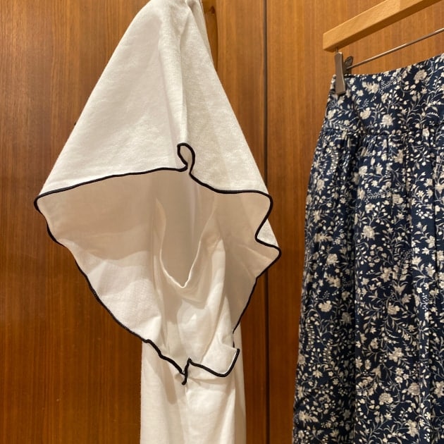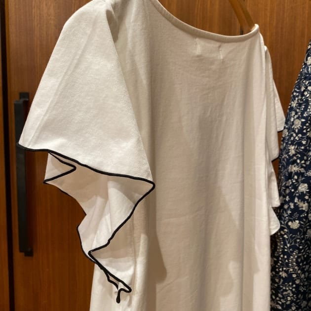 ふんわりやわらかな印象のメローフリルスリーブにより、フェミニンなスタイリングを演出して頂けます。