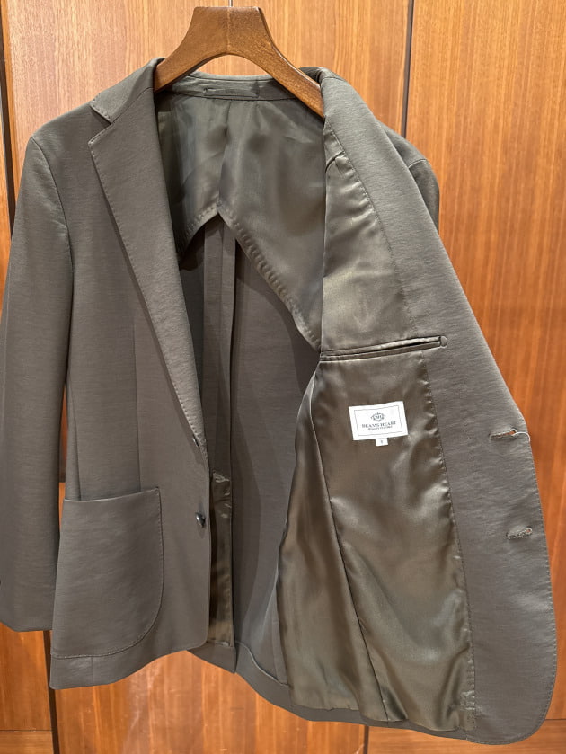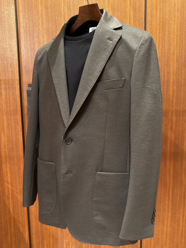 ラペルはナチュラルなロールの仕立てになり、上質な見え感に繋がっております。