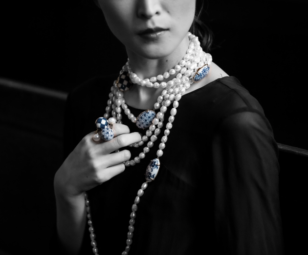 そして有田焼の美しい青と歪なバロックパールの相性がよいかも!?と大好きなCHANELやMiriam HaskelのVintage Costume Jewelryにインスパイアされて製作したコレクション。