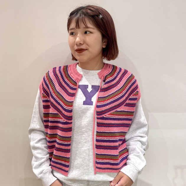 配色がどれも可愛らしいマルチボーダーベスト!