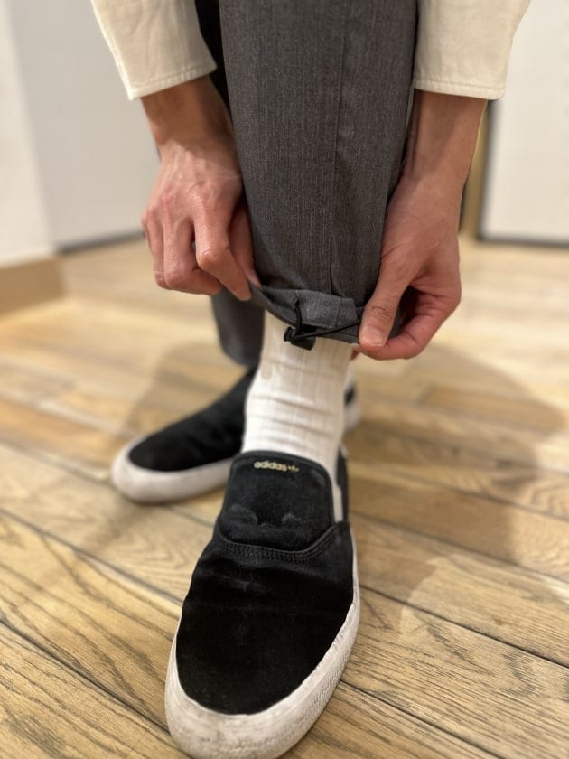 更に丈感にもクッションが溜まり、オーバーなシルエット感に。