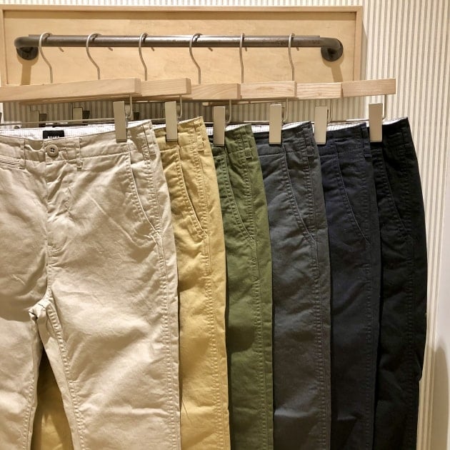 定番のチノから、秋冬に重宝するコーデュロイとモールスキンの3種類ご用意しております。