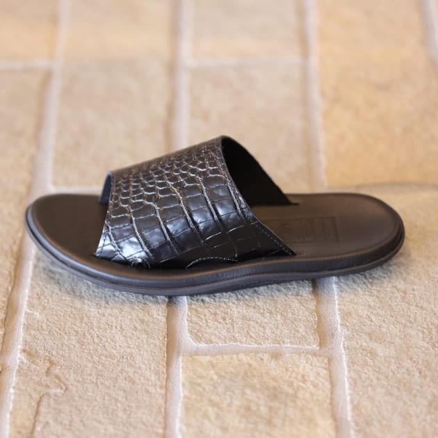 通常スウェード素材で用いられるアッパーを、クロコの型押しに変更。
