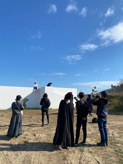 ルックの撮影も、青空・鮮やかな風景が目を惹くロケーションで。