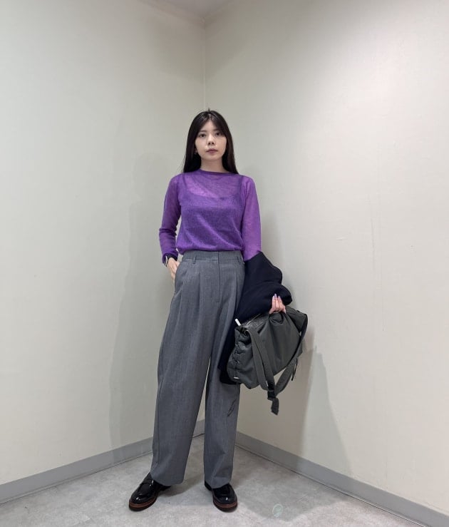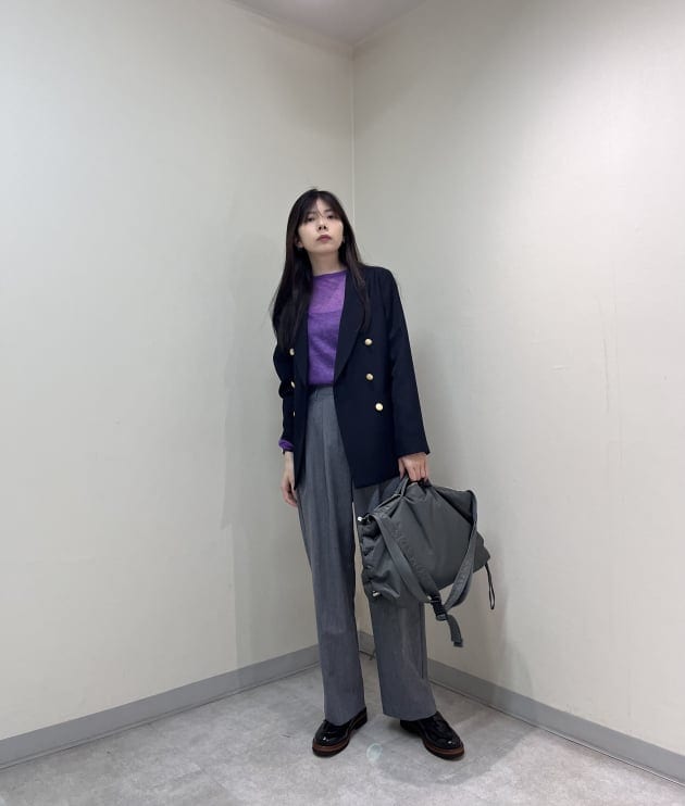 インナーに使用した紫のニットもグレーやネイビーに相性が良く、差し色としてお使い頂くのもおすすめです❤︎(私の推し色のニットです)