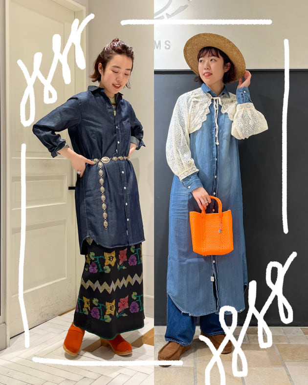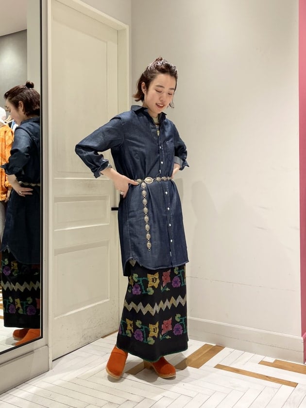 フラワープリントスカートとサボを合わせて、ネイティブらしいスタイリングにしてみました!