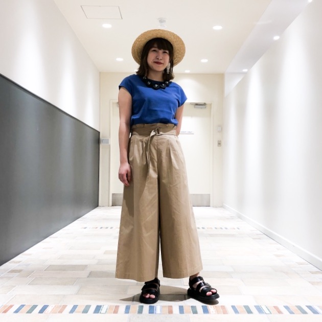 そこにON、OFF両方使えるハリ感のあるベルテッドワイドパンツで爽やかに~。