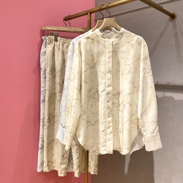 Ray BEAMS / マーブル プリント バンドカラー ブラウス