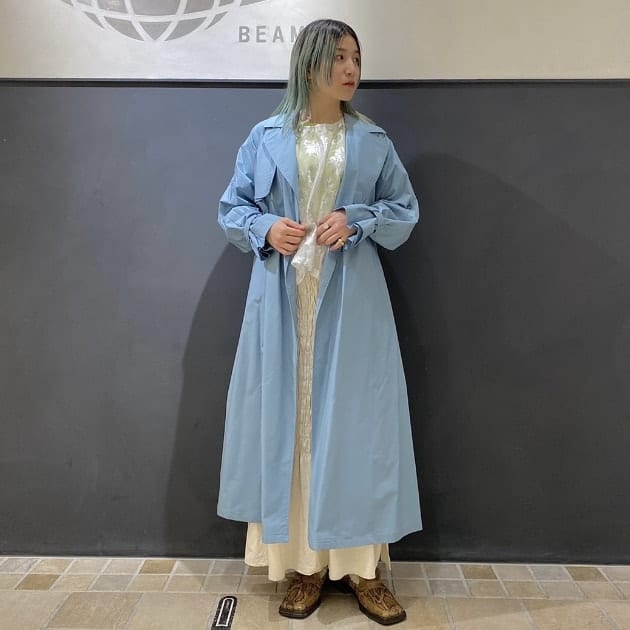 まず、スタッフ増田が着用しているのは<Ray BEAMS>のきれいな水色のコートです!