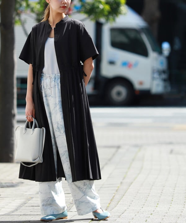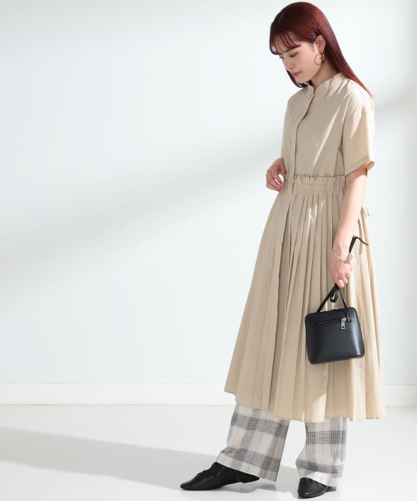 Ray BEAMS / バンドカラー プリーツ ワンピース