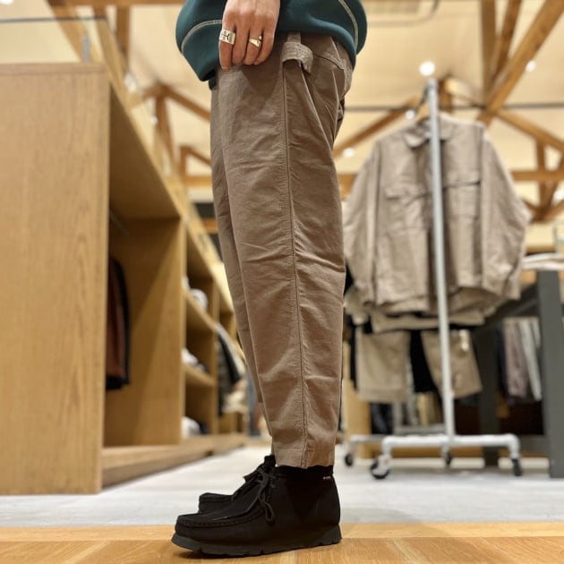シルエットは緩くテーパードがかかっておりクリーンなイメージを持たせてくれます◎