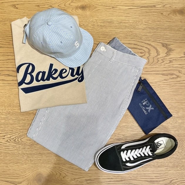 まず、コーデ自体はカレッジTをメインに爽やかな色味を全体的にチョイス。
