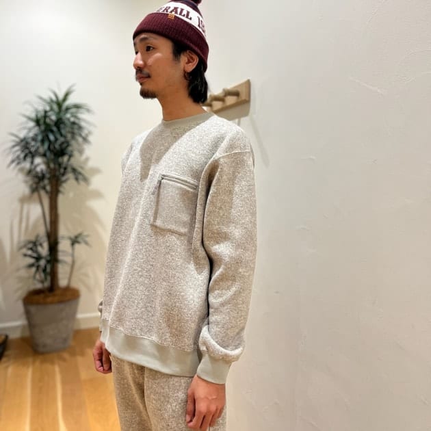 オーソドックスなクルーネックに軽くて肌触りの良いライトフリース素材を採用。