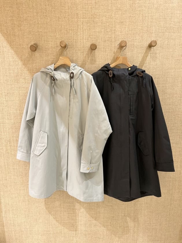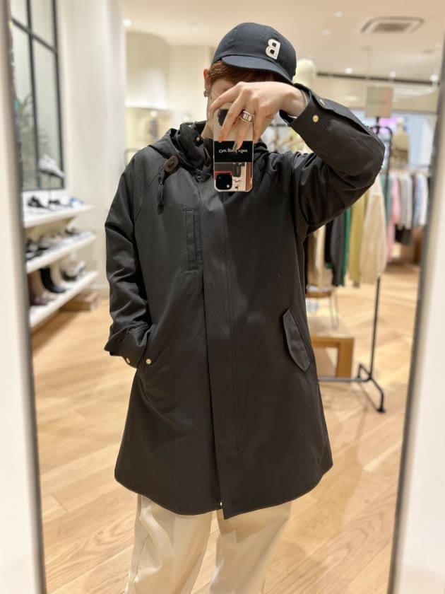モッズコートっぽい雰囲気もありつつ、少ししっとりした素材感や若干Aラインに広がる綺麗めシルエットがカジュアルだけでなく大人っぽいアイテムにも合わせやすくしてくれてます◎