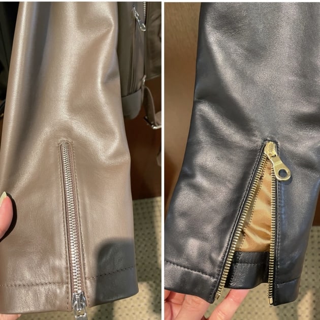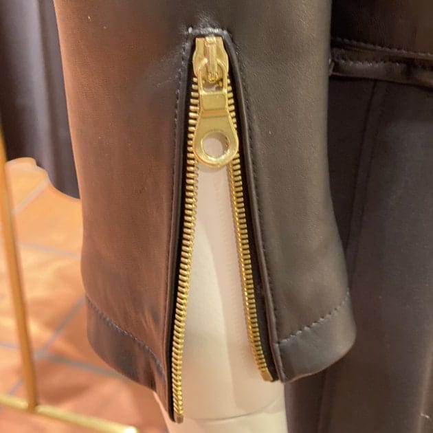 因みに袖口はファスナー付き。ファスナーを開ければ時計やアクセサリーで袖口を傷つける事も防げますよ!