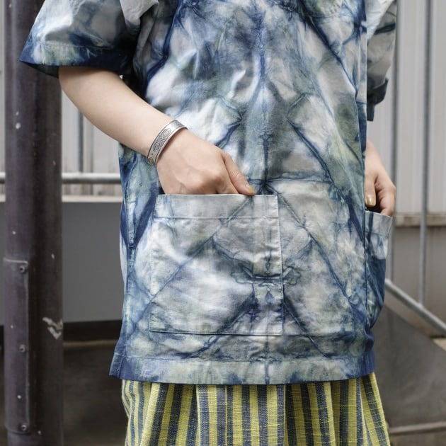 藍と草木や渋木の重なり、絞りや染め具合など、自然の柄行きで偶然生まれる表情は、それぞれに個性があり、同じようでいて同じものは一つとしてありません。