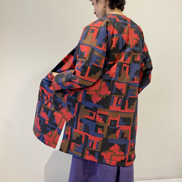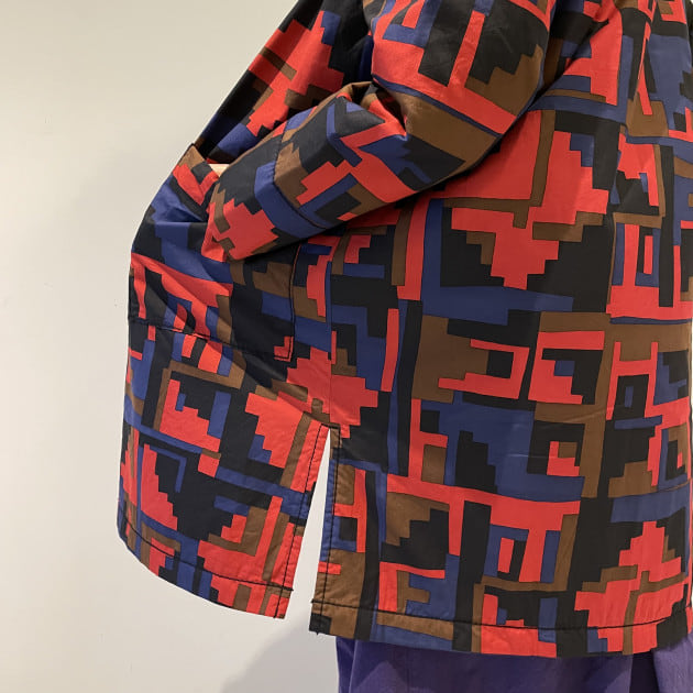 ふっくらと立体感のあるキルトが平面的なプリントになることで、色のコントラストが際立って見えます。カラーはブランドの今秋冬のシーズンカラーであるパープルが含まれたレッド、ブラウンとの組み合わせと、