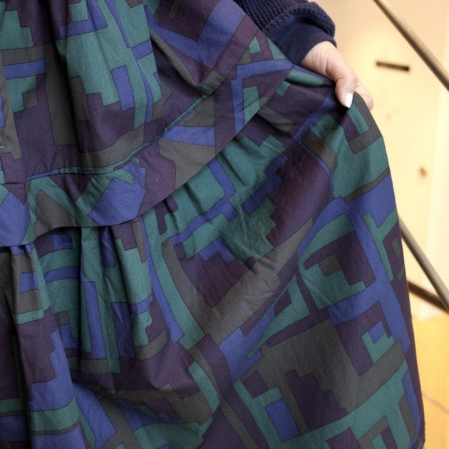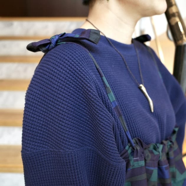 こちらのスカートはドローコードのテープ状の紐を結んで肩に掛けてキャミソールワンピースとしても着られます。