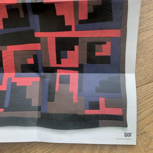 今秋冬シーズンの<homspun>のパッチワークプリントシリーズは”ログキャビンキルト”と呼ばれるパッチワークキルトを基にプリントした生地を使用しています。