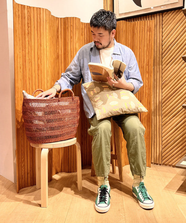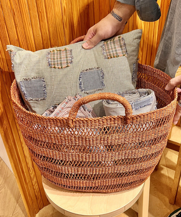 〈Babaghuri〉水草のかごには、クッションやマルチカバーを入れて。