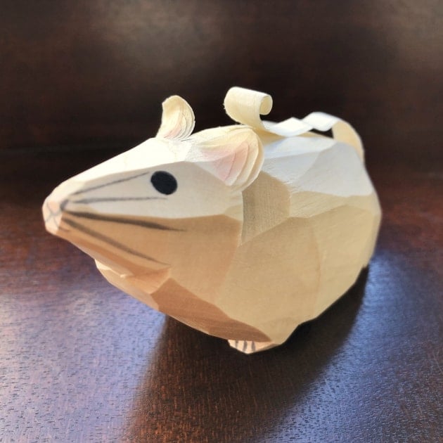 刀でピンと立たされた耳や、鉋で薄く削り出された木で尻尾が表現されています。