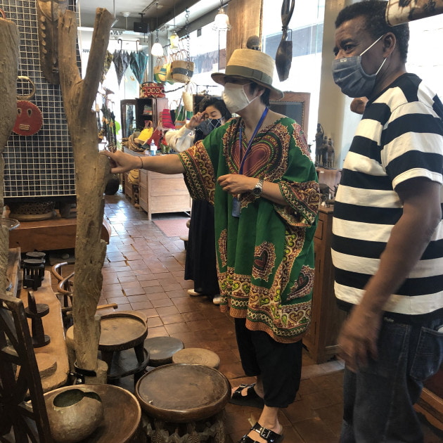 こちらは先日、ギャラリーかんかん様にお邪魔した時の様子。アフリカから届いたものもたくさん並びますよ!この後の森のブログでご紹介しますのでぜひ楽しみにお待ちください。