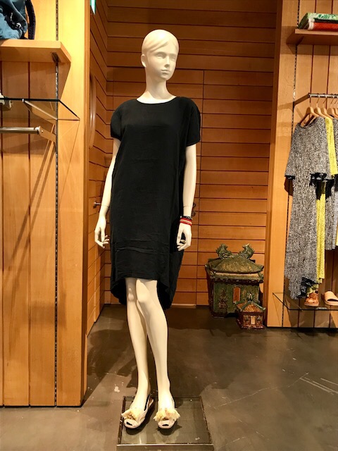丸みを帯びたシルエットとイレギュラーな裾のラインはリネン素材でありながらカジュアル感が強すぎず、アクセサリーで変化を楽しむ事もできるのでは。