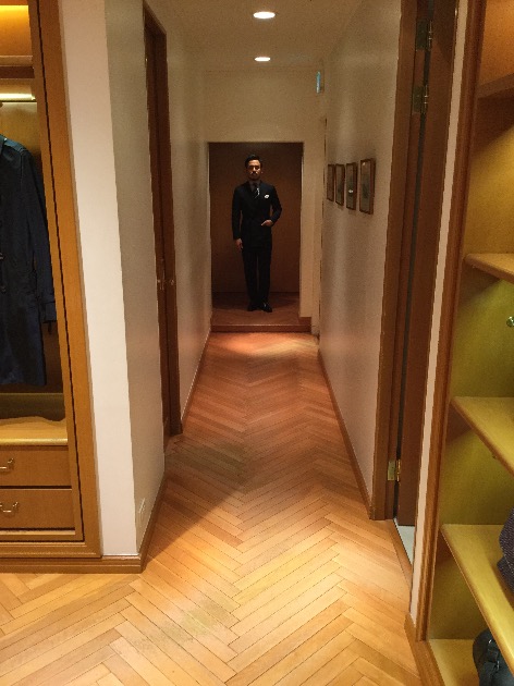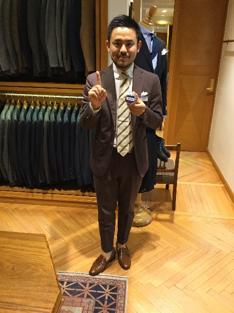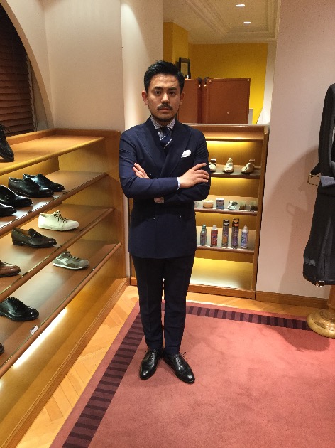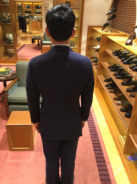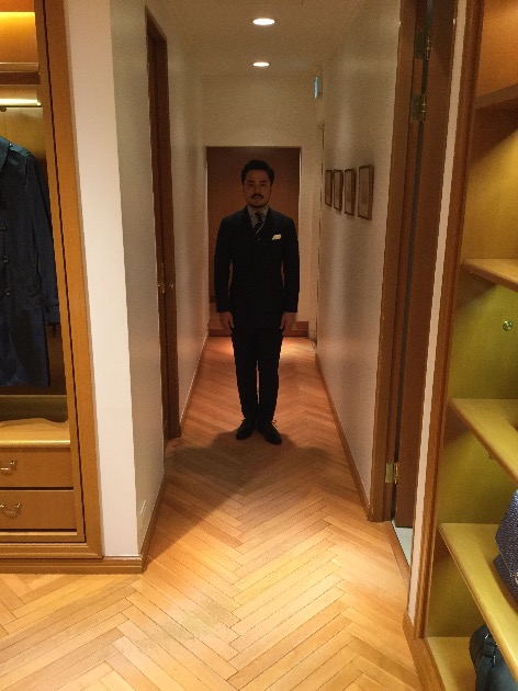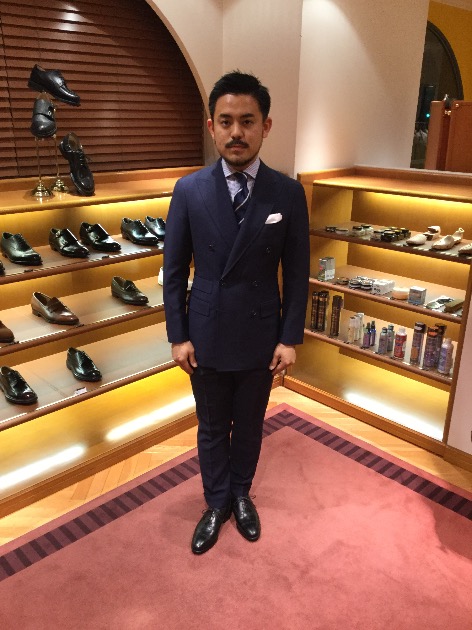 型は体格とキャリアを考慮し、ダブルブレステッドを選択。