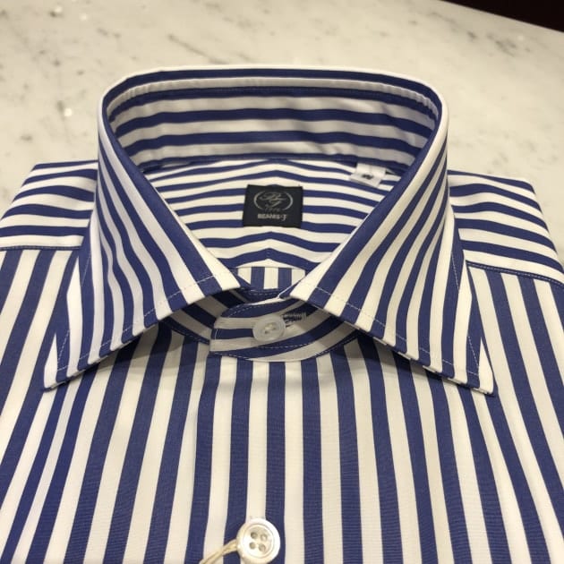 BEAMS F ロンドンストライプワイドカラーシャツ