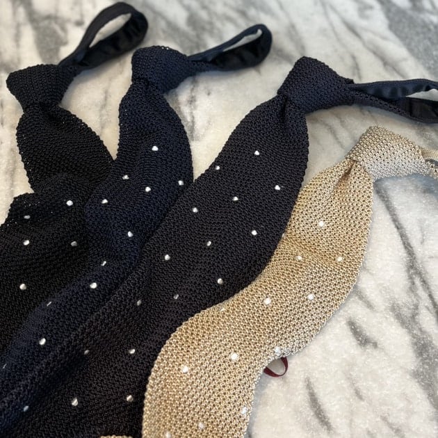 以前は無地とメランジでのご用意でしたが、ドットになると少しストイックさが減ってお試し頂けやすいのではないでしょうか。