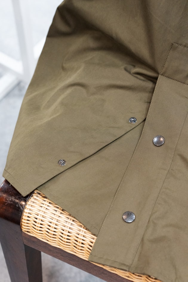 裾にはスナップボタンが付いているので裾の広がり方は調整が可能です。