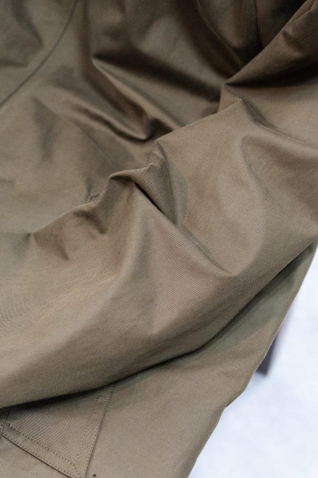 春先のアウターとして着用しやすいウェイトの生地で、オイルドコットンよりも手入れの心配がいらない生地なので、お客様からの反応も良いですね。