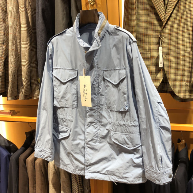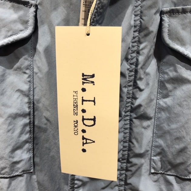 MIDA takahashi.hideki 2023.02.06 こんにちは高橋です。いつもブログ見て下さりありがとうございます。さて、本日のご紹介は?こちらMIDAサックスブルーのM65 爽やかの一言これ、仕入れしたかった人誰だがわかります。ナイロンのシャカシャカなんで、便利ですね。おススメです。オリーブとネイビーがございます。気がつくとなくなる量です。お早めに今日はこの辺で引き続きどうぞご贔屓に